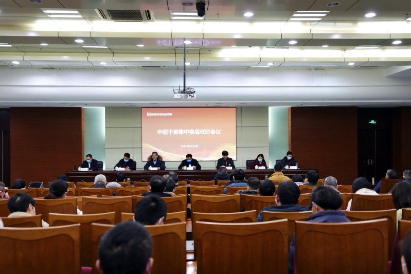 1月14日上午,我校在图书馆紫厅召开中层干部集中换届任职会议。党委书记沈琳发表讲话,党委副书记、校长许朝山宣布中层干部换届任职决定,纪委书记丁振中作干部任职集中廉政谈话,党委副书记朱平主持会议,全体中层以上干部出席会议。