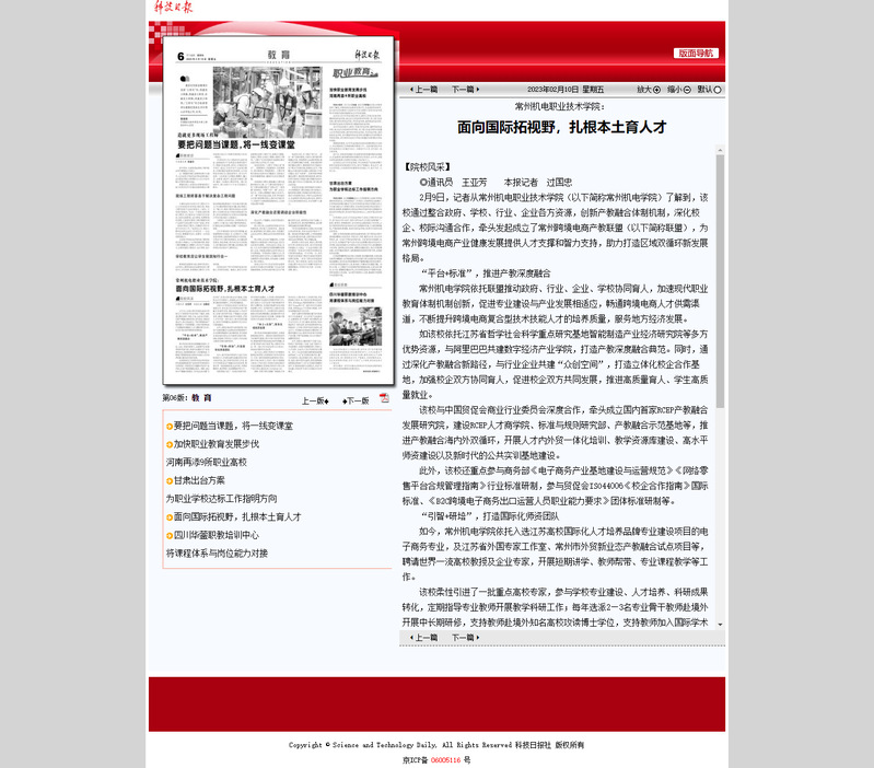 2月9日,记者从常州机电职业技术学院(以下简称常州机电学院)了解到,该校通过整合政府、学校、行业、企业各方资源,创新产教融合体制机制,深化校企、校际沟通合作,牵头发起成立了常州跨境电商产教联盟(以下简称联盟),为常州跨境电商产业健康发展提供人才支撑和智力支持,助力打造区域双循环新发展格局。