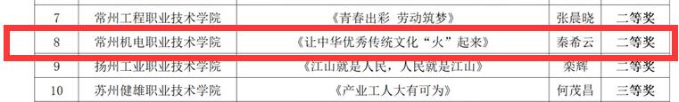 近日,由江苏省高校网络思想政治工作中心主办的2022年度江苏省高校网络思政“金微课”征集评选活动结果公布,我校机械工程学院辅导员秦希云的微课作品《让中华优秀传统文化“火”起来》获高职组二等奖。