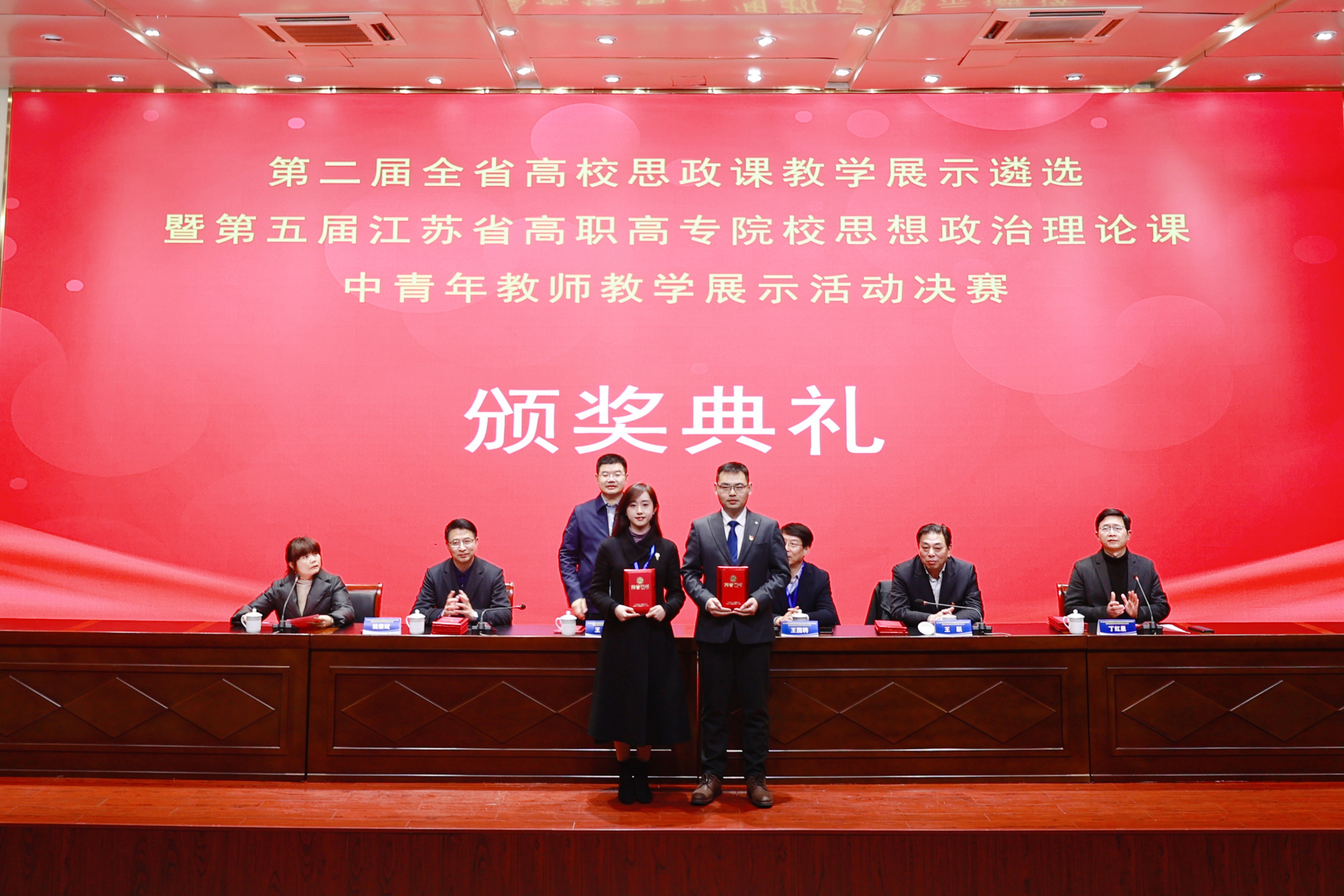 2月12日,由江苏省教育厅、江苏省高校思政课教学指导委员会高职高专分教指委主办的第二届高校思政课教学展示遴选暨第五届江苏省高职高专院校思想政治理论课中青年教师教学展示活动决赛闭幕,我校马克思主义学院思政教师许都获《毛泽东思想与中国特色社会主义理论体系概论》课程特等奖、袁琴获《习近平新时代中国特色社会主义思想概论》课程二等奖。