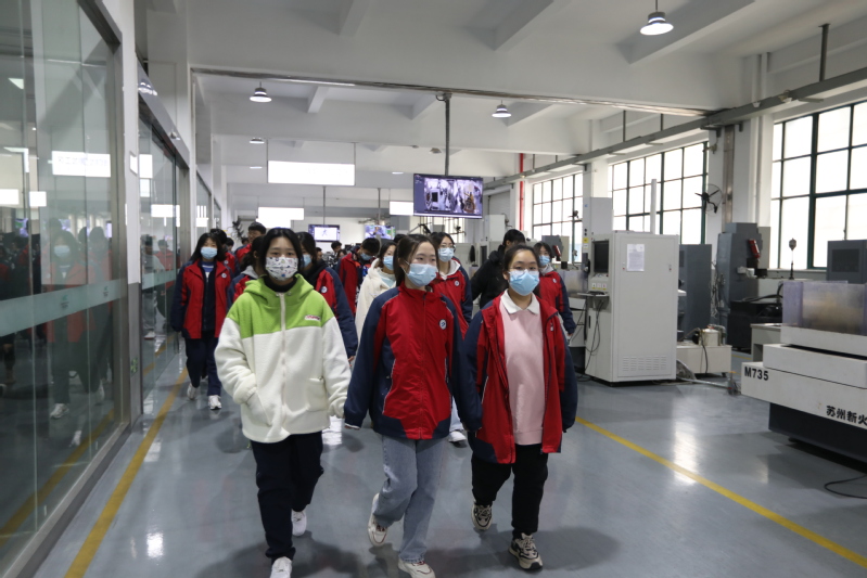 来访师生参观了我校东区现代工业中心,在精密机械制造技术实训基地、模具技术实训基地、智能制造实训基地和数控技术实训基地等先进实训室,同学们通过听指导老师讲解、观摩实训设施设备,真实感受到了我校教育资源的优势和特点。在产教园、校中厂“3D特训营”、人工智能产业学院、体育馆、图书馆、师生公寓、食堂等地,澄西中学师生零距离感受了我校的校园文化、人才培养特色