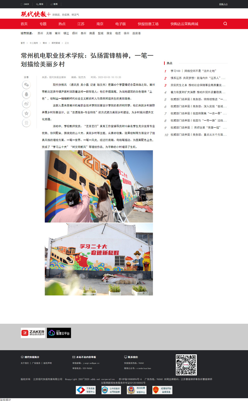 现代快报讯(通讯员吴小磊记者陆文杰)在第60个学雷锋纪念日来临之际,常州市新北区奔牛镇尹家村活跃着这样一群年轻人:他们手握画笔,为当地建筑的白色墙体“上色”,绘制出一幅幅新时代社会主义新农村人与自然和谐共生的美丽画卷。