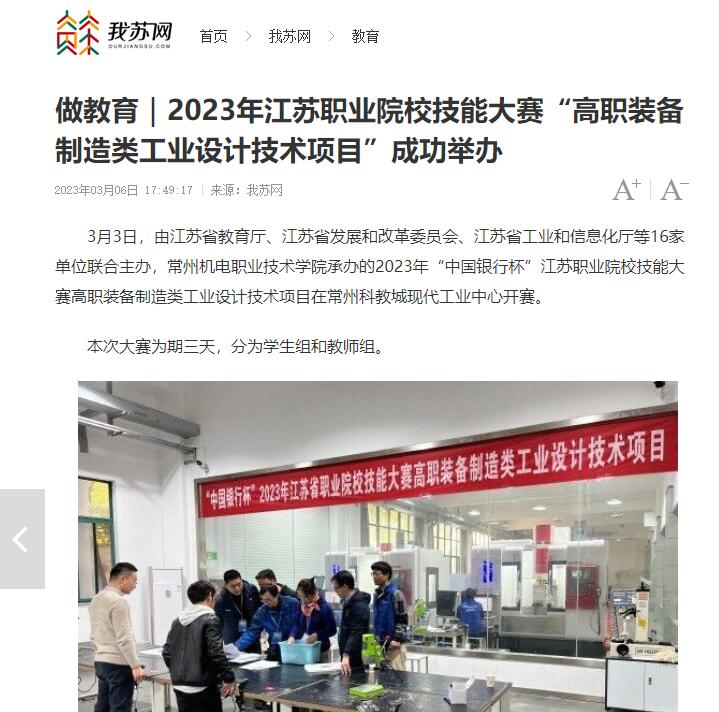 3月3日,由江苏省教育厅、江苏省发展和改革委员会、江苏省工业和信息化厅等16家单位联合主办,常州机电职业技术学院承办的2023年“中国银行杯”江苏职业院校技能大赛高职装备制造类工业设计技术项目在常州科教城现代工业中心开赛。