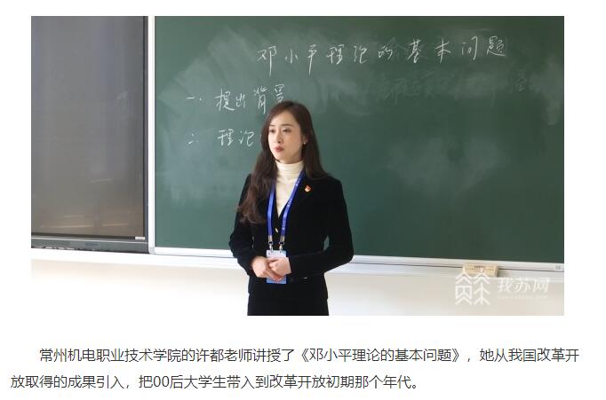 常州机电职业技术学院的许都老师讲授了《邓小平理论的基本问题》,她从我国改革开放取得的成果引入,把00后大学生带入到改革开放初期那个年代。