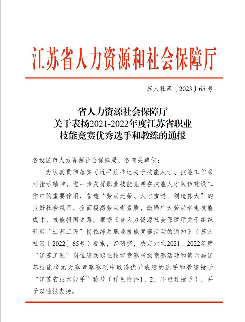 近日,2022年江苏省数字技术职业技能竞赛结果公布,我校经济管理学院王睿等11名教师在竞赛中脱颖而出,获得优异成绩,被授予“江苏省技术能手”称号。