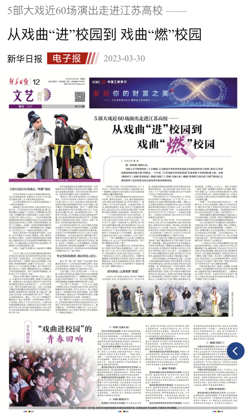 中华优秀传统文化是中华民族的精神命脉,由江苏省委宣传部、省教育厅主办的“江苏戏曲名作高校巡演”,这个春天再度全面开启。