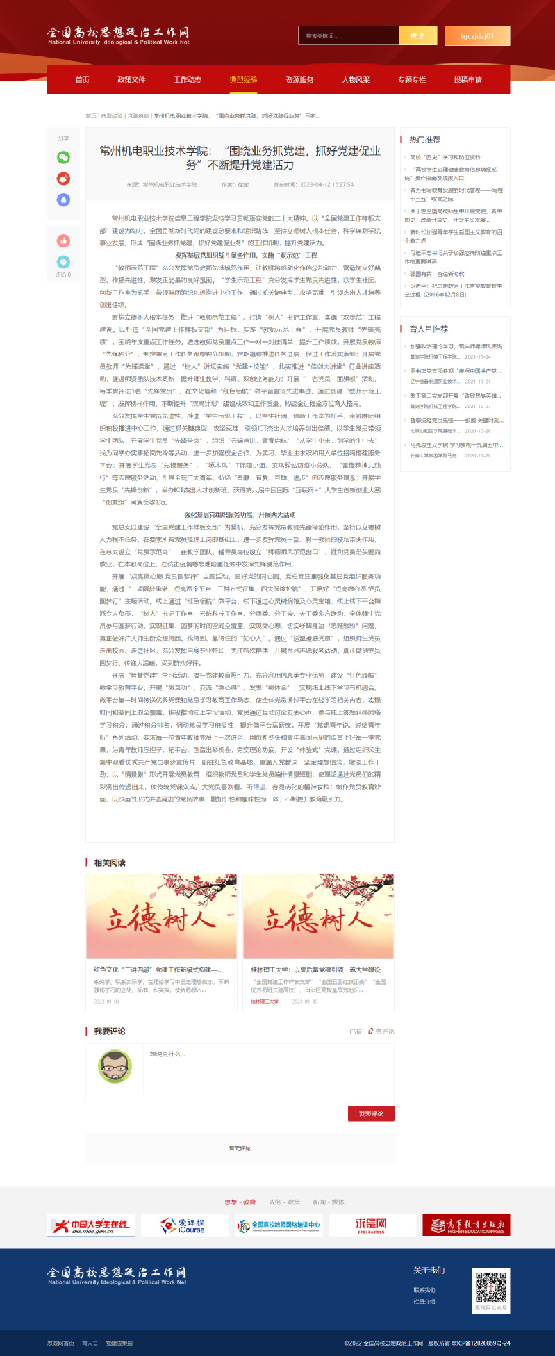 常州机电职业技术学院信息工程学院坚持学习贯彻落实党的二十大精神,以“全国党建工作样板支部”建设为动力,全面贯彻新时代党的建设总要求和组织路线,坚持立德树人根本任务,科学谋划学院事业发展,形成“围绕业务抓党建,抓好党建促业务”的工作机制,提升党建活力。