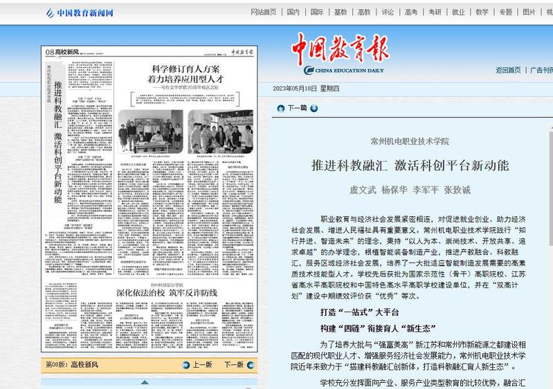 为了培养大批与“强富美高”新江苏和常州市新能源之都建设相匹配的现代职业人才、增强服务经济社会发展能力,常州机电职业技术学院近年来致力于“搭建科教融汇创新体,打造科教融汇育人新生态”。