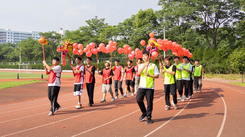 “龙腾盛世”项目以学员制作并表演舞龙为主线。通过神龙出世、打鼓点睛、沙场点兵、龙行天下等环节,4组学员们齐心协力,用气球制作龙身,认真学习舞龙的基本技法,进行创编排练,最后进行舞龙竞赛。四条彩龙在操场上飞舞,展现出了学员们的创造力和团队合作精神。
