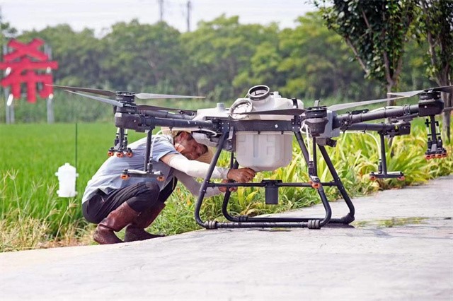 最后,大家集体参观了种粮大户吴建兴创立的“吴建兴家庭农场”。吴建兴介绍农场实现从种子的培育、播种,到收割、销售一体化的绿色产业链,吴建兴还给大家演示了农用植保无人机操作流程。