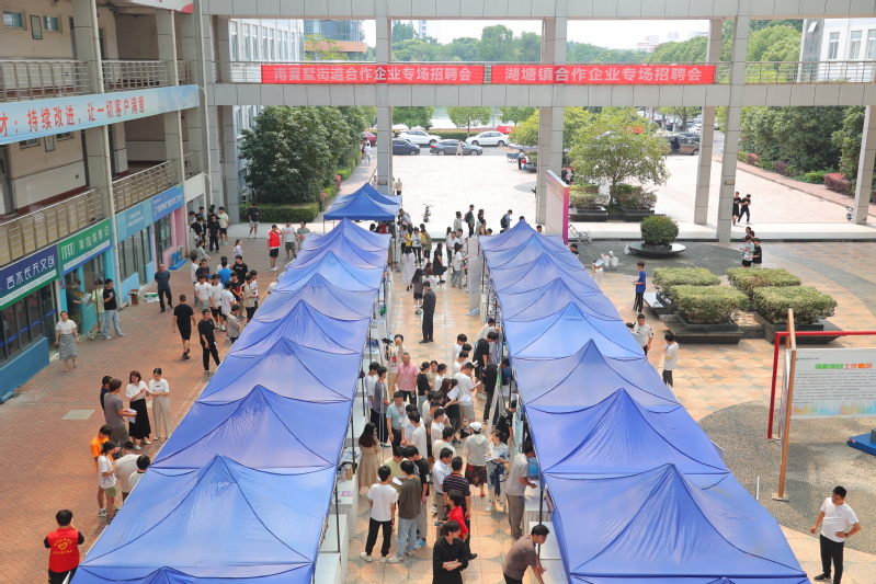 6月14日下午,我校联合湖塘镇、南夏墅街道共同举办“就业扬帆、政府领航”区域专场招聘会。副校长刘贤锋亲临现场指导,与用人单位和毕业生进行了深入交流。本次招聘会以湖塘镇、南夏墅街道优质企业用人需求为主导,结合学校专业情况,中车戚墅堰机车车辆工艺研究所有限公司、常州瀚镓半导体有限公司等50余家企业参会,提供岗位600余个,备受学生青睐。