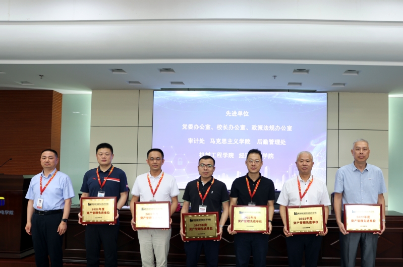 仪式上对 2022年度在学校国有资产管理工作中做出显著成绩的单位和个人进行表彰。周庆元分别为产勇虎等10名同志颁发先进个人证书,为党委办公室、校长办公室等7个部门颁发先进单位奖。