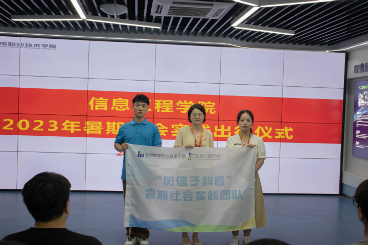 6月19日,为深入学习贯彻习近平总书记对新时代大学生上好社会实践“必修课”的要求,坚定理想、淬炼意志、增长才干,信息工程学院举行2023年暑期社会实践活动出征仪式。信息工程学院党总支书记徐莹、党总支副书记李丹屏,社会实践团队指导教师蔡蓉蓉、刘俊杰参加了出征仪式,会议由学院团委书记秦希云主持。