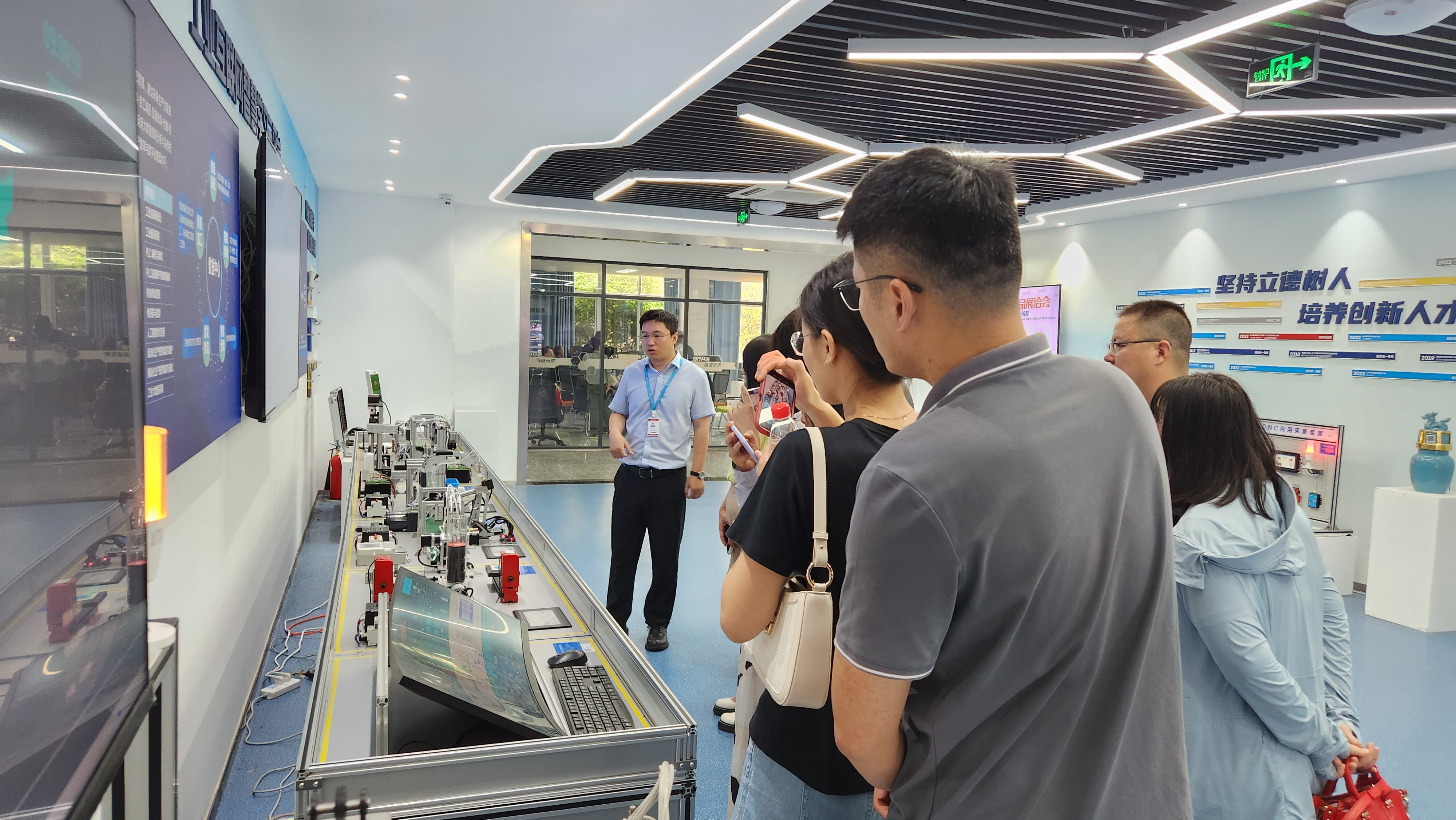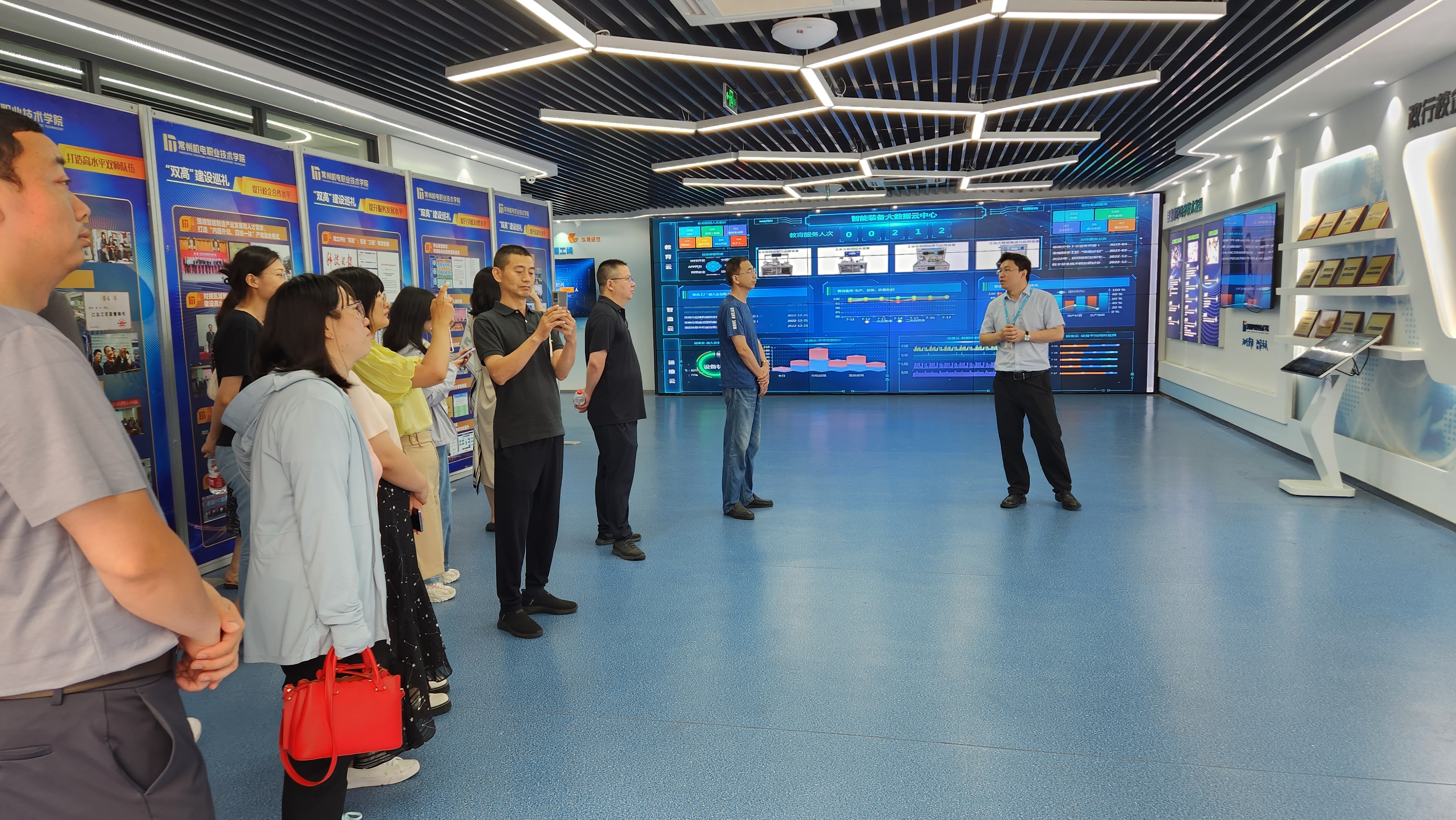 开班仪式后,王福章带领大家一同参观了人工智能与工业互联网创新中心,并针对人工智能产业学院的建设成果、特色做法和创新实践做了详细介绍。