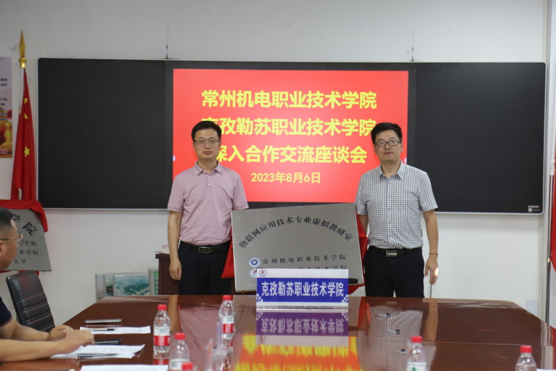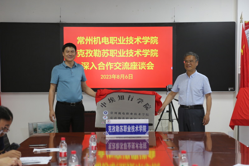 交流会上,双方领导为“中埃知行学院”共建单位揭牌,“物联网应用技术专业虚拟教研室”共建基地揭牌。两校就校合作事宜进行了深入交流。朱平表示,双方可以充分发挥办学优势、民族特色,进一步加强在文创产品的合作研发、学生创新创业大赛、学生管理、辅导员工作队伍建设、线上线下马克思主义学院共建、各类课题成果的申报以及物联网、汽车类、无人机、机电类专业建设等诸多领域开展交流合作。李东河表示,会要求各部门积极对接,充分发挥援疆院校资源优势,加快自身内涵建设,提升办学能力。
