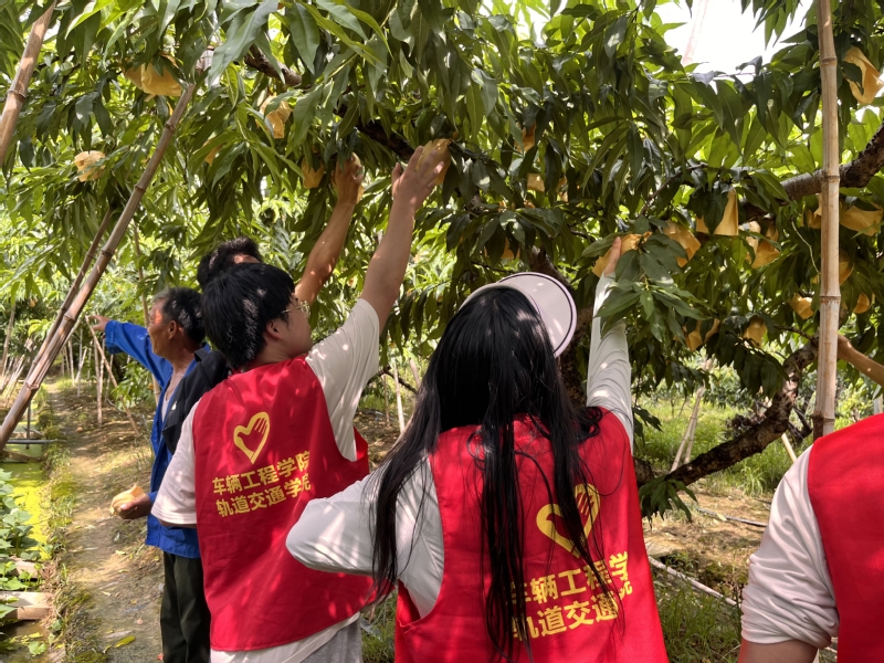 实践团成员走进农户种植园,帮忙采摘、运输和装箱,线上线下为当地水蜜桃打call,为乡村产业振兴贡献了一份力量。