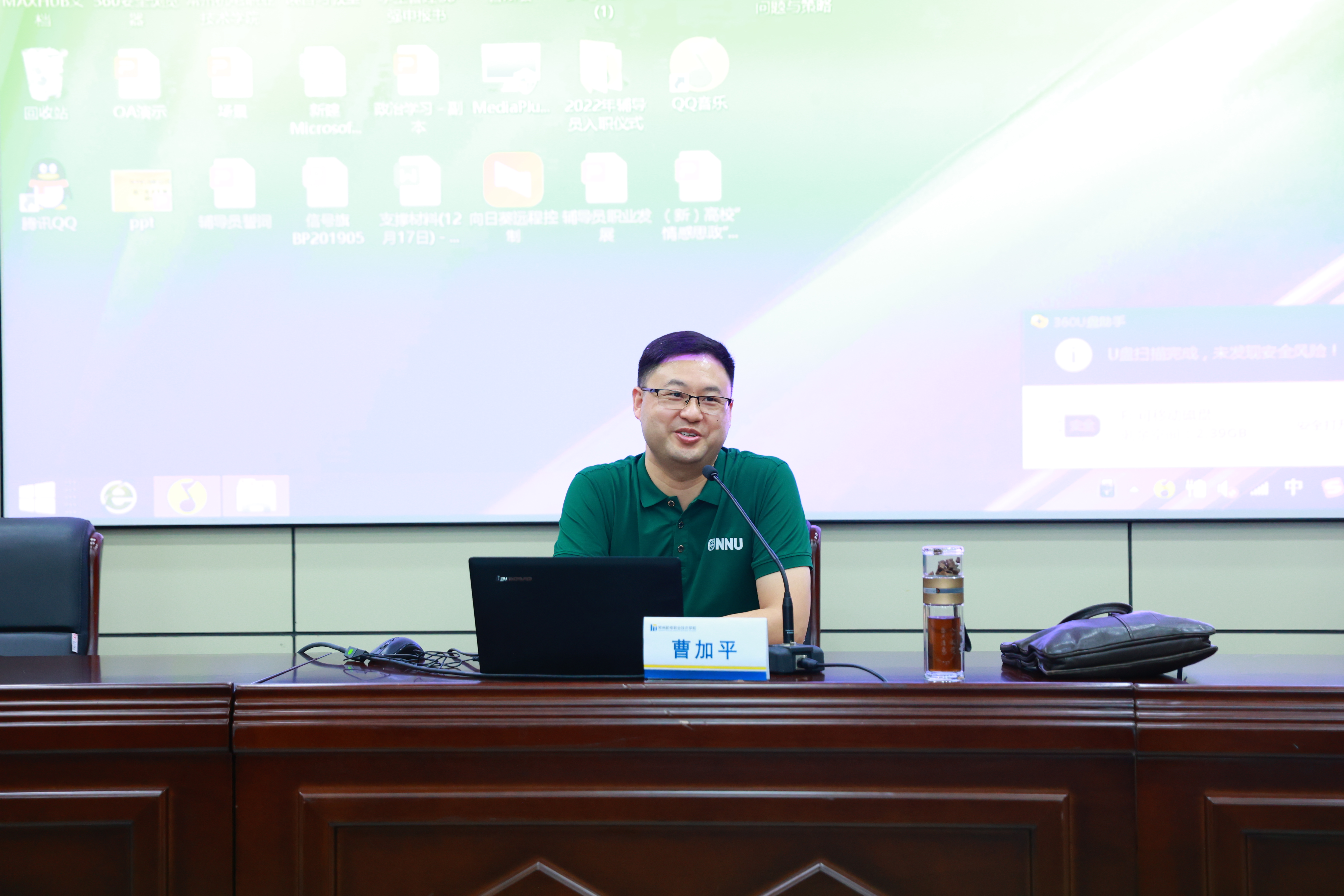 我校王奇老师围绕新时代思政教育工作者能力作专题讲座。