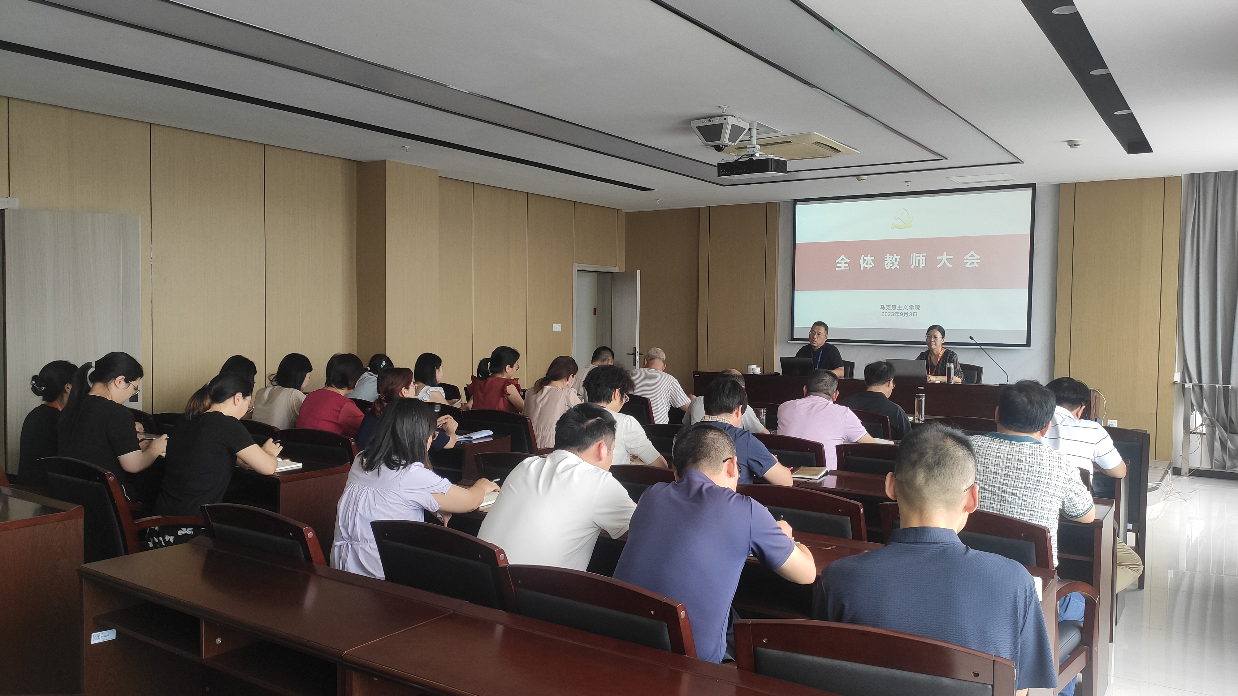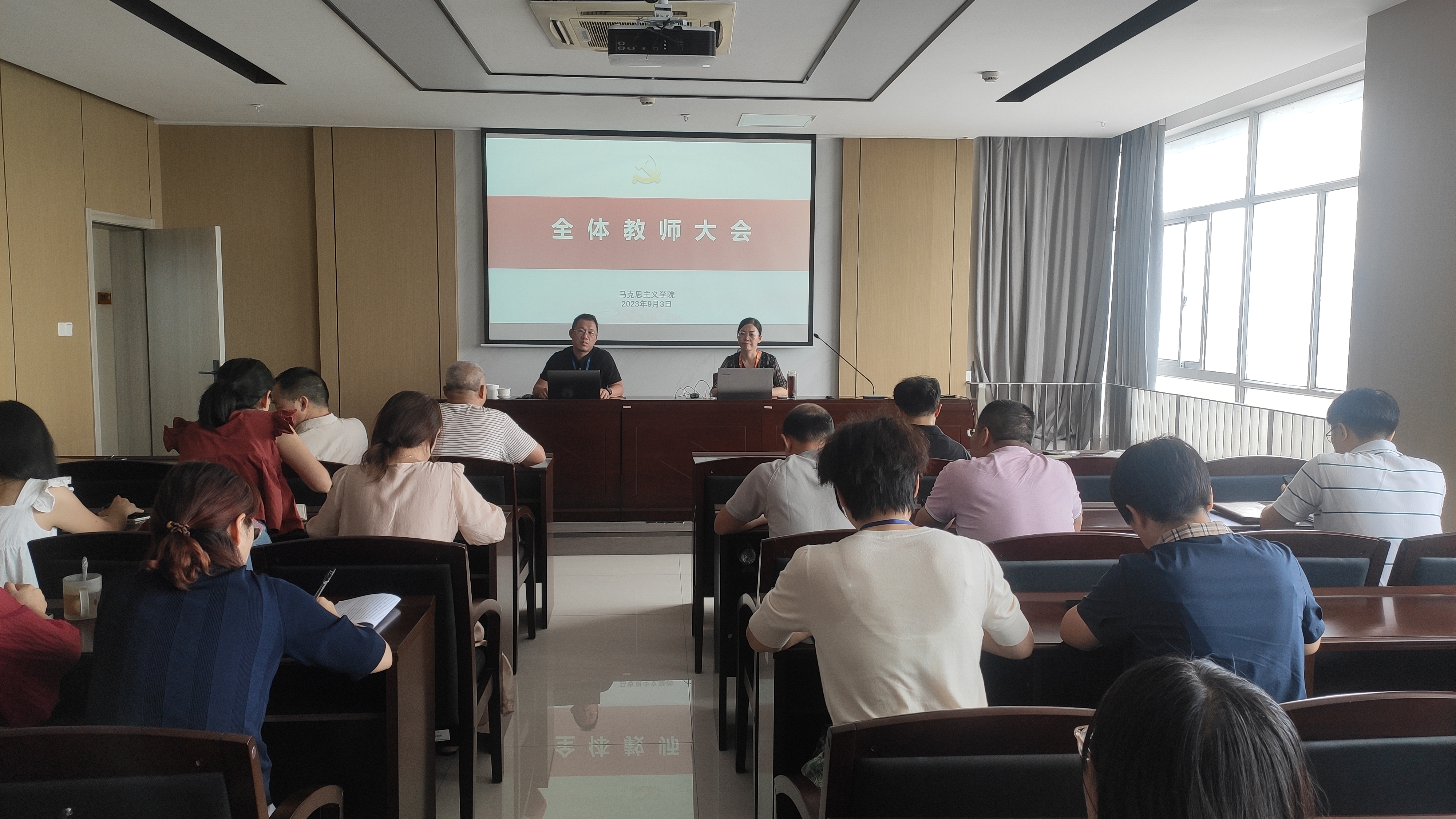 2023年9月3日,马克思主义学院在图书馆1014会议室召开新学期全体教师大会。学院全体教职工参加本次会议,会议由院长李昊远主持。