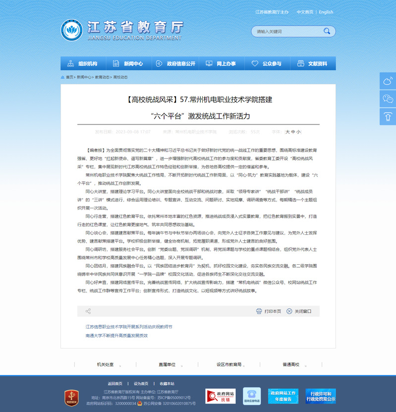 常州机电职业技术学院聚焦大统战工作格局,不断开拓新时代统战工作新局面,以“同心·筑力”教育实践基地为载体,建设“六个平台”,推动统战工作创新发展。