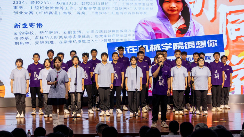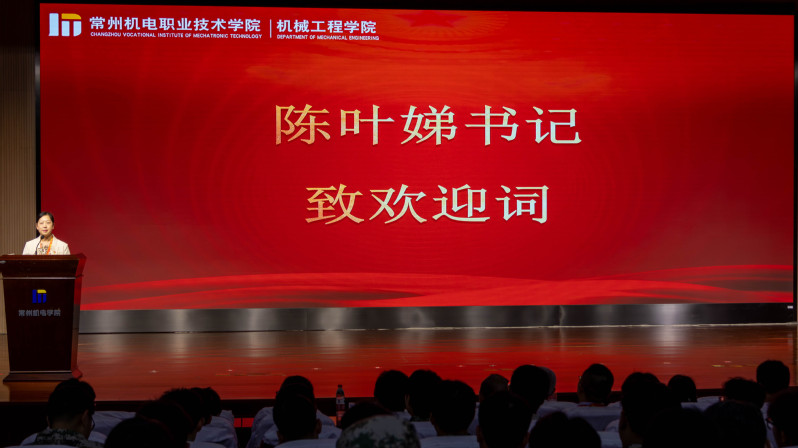 机械工程学院党总支书记陈叶娣老师讲话。她对新生表示热烈欢迎,向他们表达了三点希望:要积极向上,主动作为,要充分发挥自己的潜力,积极参与学校的各项活动;要以刻苦钻研的态度迎接学术挑战,不断提高自己的综合素质;要团结奋进、勇毅前行,一起迎接未来的挑战。