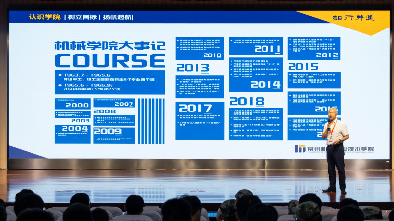 机械工程学院院长刘江以“知行并进 智造未来”为题开讲新生第一课,介绍了机械工程学院的专业优势和行业前景。
