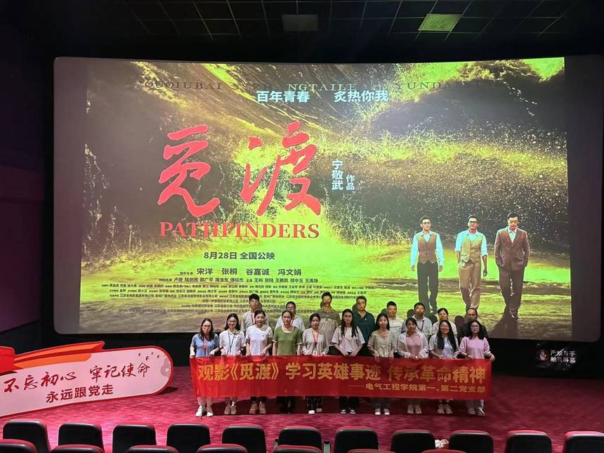 9月20日下午,为巩固深化主题教育成果,进一步加强对党员党性锻炼,激励广大党员和入党积极分子坚定理想信念,电气工程学院党总支组织党员和积极分子走进影院,共同观看革命历史题材电影《觅渡》,感受“常州三杰”的炙热青春,重温“常州三杰”的铮铮铁骨和家国情怀。