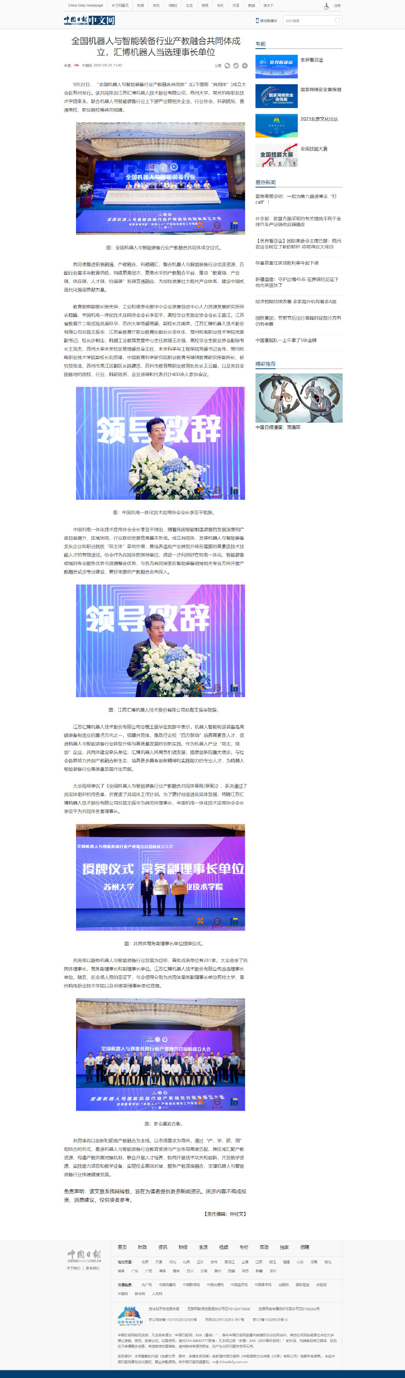 9月22日,“全国机器人与智能装备行业产教融合共同体”(以下简称“共同体”)成立大会在苏州举行。该共同体由江苏汇博机器人技术股份有限公司、苏州大学、常州机电职业技术学院牵头,联合机器人与智能装备行业上下游产业链相关企业、行业协会、科研院所、普通高校、职业院校等共同组建。