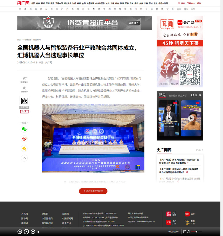 9月22日,“全国机器人与智能装备行业产教融合共同体”(以下简称“共同体”)成立大会在苏州举行。该共同体由江苏汇博机器人技术股份有限公司、苏州大学、常州机电职业技术学院牵头,联合机器人与智能装备行业上下游产业链相关企业、行业协会、科研院所、普通高校、职业院校等共同组建。