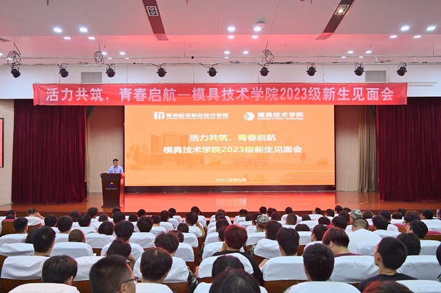 9月25日晚上,为帮助2023级新生树立明确的大学目标,更好适应大学校园生活,合理规划自己的大学生涯,进一步提升新生对所学专业的了解和认识,模具技术学院在红厅召开以“活力共筑,青春启航”为主题的2023级新生见面会。模具技术学院领导班子、团队老师、全体辅导员、新生班主任、优秀学生代表及2023级全体新生参加了新生见面会。本次见面会由模具技术学院团委书记姚建主持。