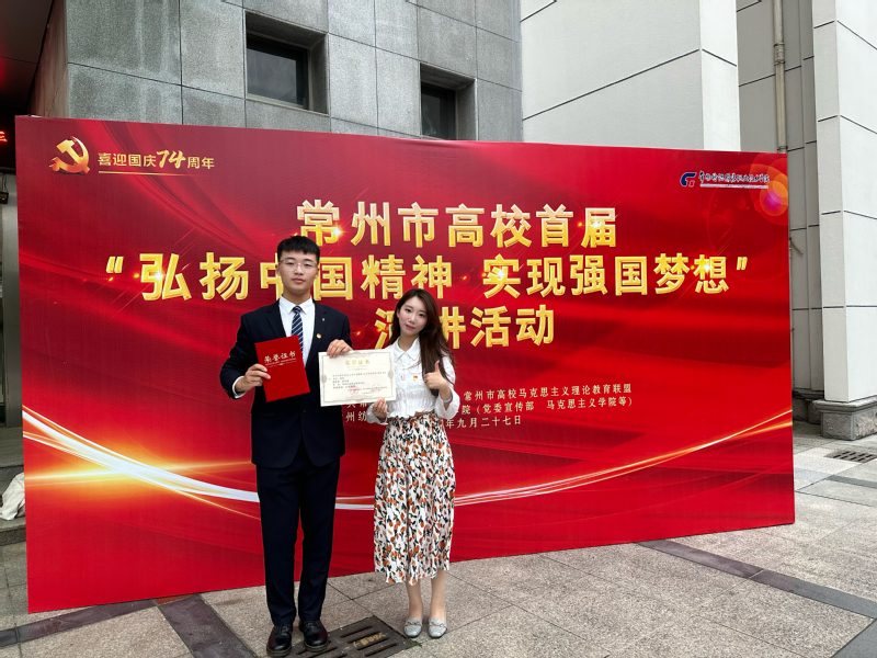 9月27日,由常州市委宣传部主办,常州纺织服装学院承办的首届“弘扬中国精神 实现强国梦想”演讲比赛在常州纺织服装学院举行。本次比赛共有来自在常高校13所学校的选手参赛,我校学生樊书桥荣获二等奖,指导教师谭喻天获得“优秀指导教师”的称号。