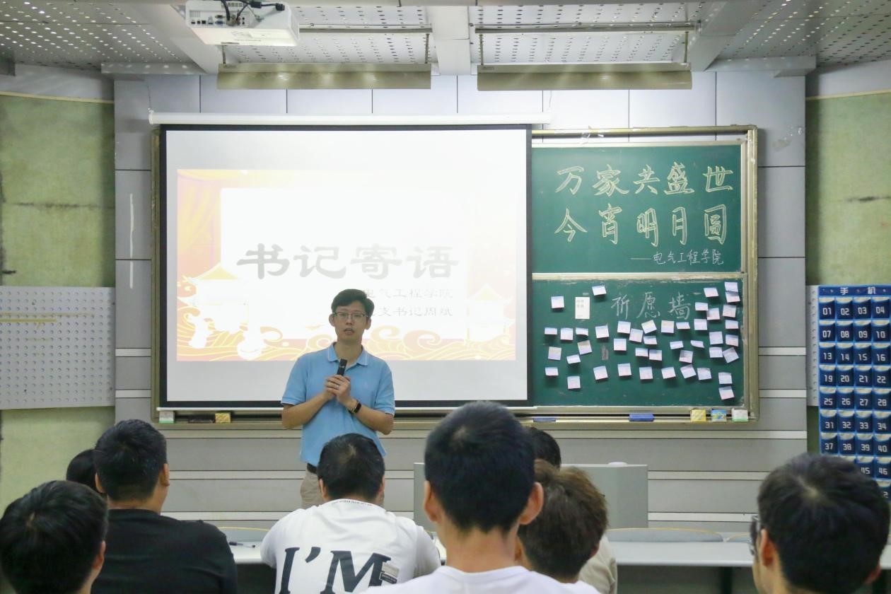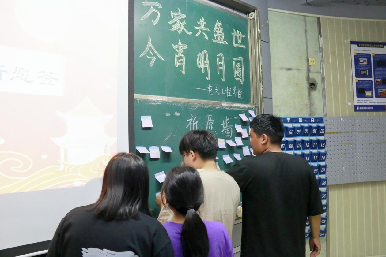 人间至味是团圆。师生共聚一堂,面对面交流,心与心碰撞,共话期望与理想。周斌从为人、为学、为事三方面寄语新生,他希望电气学子秉持“崇德尚技、智控未来”的院训,以“天生我材必有用”的信心,争做德才兼备的高技术人才。随后,老师们向新生们送上月饼,一起在祈愿墙上共贴祝福,让新生们感受家的“味道”与温馨。