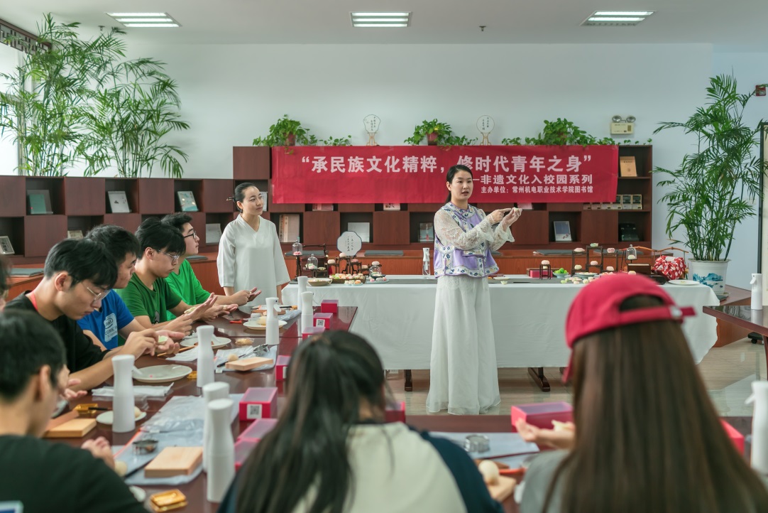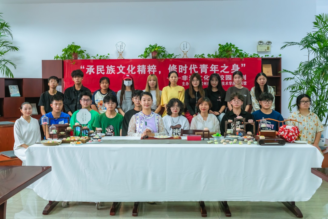 9月27日下午,图书馆在二楼行远书苑举办“承民族文化精粹 修时代青年之身”非遗文化入校园系列主题活动。本次活动邀请高级茶艺师汪红老师讲授“唐菓子制作”。