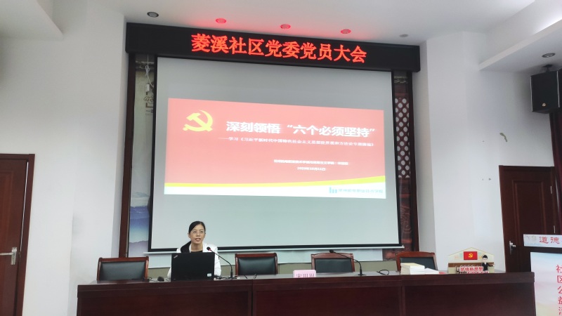 党总支副书记宋田田围绕《深刻领悟“六个必须坚持”——学习习近平新时代中国特色社会主义思想世界观和方法论专题摘编》这一主题,结合社区做法和常州建设情况,为菱溪社区全体党员详细阐述了主题教育学习重点。通过讲课,引导社区党员更好地了解和践行党的方针政策。