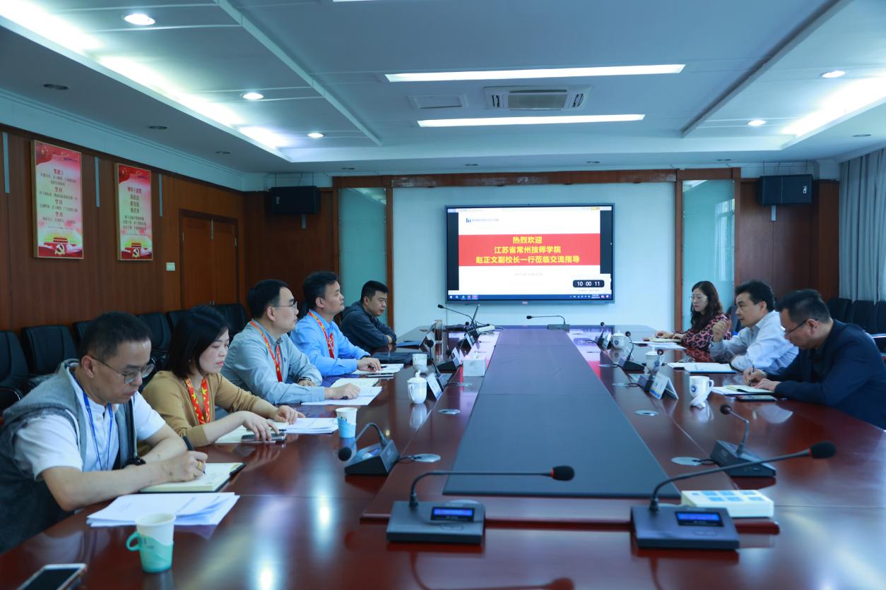 10月16日上午,江苏省常州技师学院副校长赵正文一行三人来校访问交流。我校副校长刘贤锋、产教合作部主任刘刚、继续教育学院院长施皓,继续教育学院成人教育部主任范志娟等参加交流。