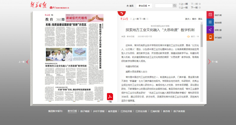 近年来,常州机电职业技术学院依托常州丰富的工业文化资源,围绕“以文化人、以文育人”理念,以弘扬中国工业文化精神为核心,以培养高素质高技能应用型人才为目标,紧扣教学主线,开发理论教学资源,搭建实践教学平台,构建协同育人机制,初步建成具有先进工业文化特质的高职“大思政课”教学体系,取得良好的教学效果和育人成效。