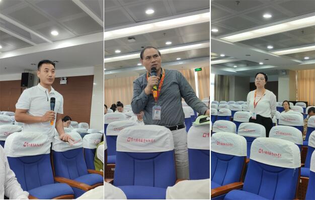 现场讨论气氛热烈,老师们结合自己的工作岗位,就学生体育课突发事件的处理、学校设备安全检查记录及“现场型”“实践型”学生工作的处理技巧与注意事项等方面与金科进行了深入探讨。