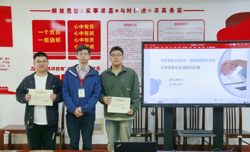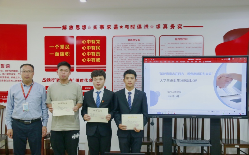 10月23日,为全面普及大学生职业规划知识,传播生涯成长理念,电气工程学院在善为楼407开展职业生涯规划比赛。电气工程学院党总支副书记李兵、全体指导老师及二十余名参赛选手参加活动。比赛邀请国际合作与交流处处长高淑红、电气工程学院党总支书记周斌、学生工作处副处长游杰作评委指导。