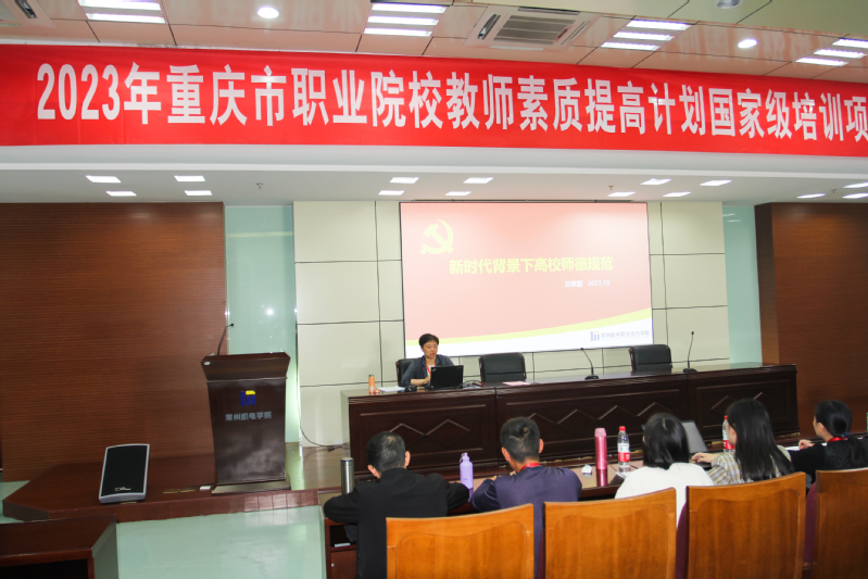 我校已连续5年承办重庆市职业院校教师素质提高计划国家级培训项目,累计开展培训15个班次。本次开班为中职新型活页式与工作手册式教材开发能力提升和高职“1+X”证书种子教师研修(工业机器人技术、机电一体化技术)3个项目。开班仪式后,我校党委教师工作部、人事处、教师发展中心刘莱蕾副处长作题为《新时代背景下高校师德规范》开班第一讲。