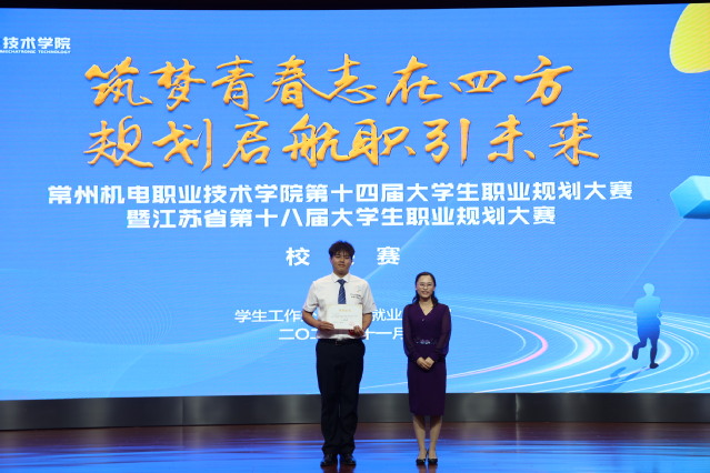 比赛自2023年9月启动以来,历经海选、初赛、复赛等环节,在进入最后决赛的21名选手中,交通工程学院陆立伟同学获得成长赛道一等奖,创意设计学院喻戈和电气工程学院周家乐同学获得二等奖,经济管理学院郁梅、电气工程学院宋顺和机械工程学院董仁杰同学获得三等奖;信息工程学院张森获得就业赛道一等奖、机械工程学院张楠和模具技术学院朱凯文获得二等奖、创意设计学院成诗雨、经济管理学院赵浩著和电气工程学院赵朱易文获得三等奖。