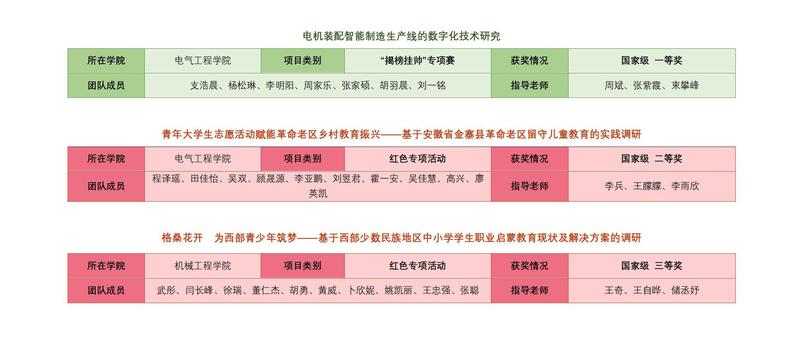 其中,《电机装配智能制造生产线的数字化技术研究》项目荣获“揭榜挂帅”专项赛全国一等奖,《青年大学生志愿活动赋能革命老区乡村教育振兴——基于安徽省金寨县革命老区留守儿童教育的实践调研》《格桑花开 为西部青少年筑梦——基于西部少数民族地区中小学学生职业启蒙教育现状及解决方案的调研》项目荣获红色专项赛全国二、三等奖。根据高职发展智库对本届挑战杯获奖赋分统计,我校位列全国高职院校第18位,江苏高职院校第1位。