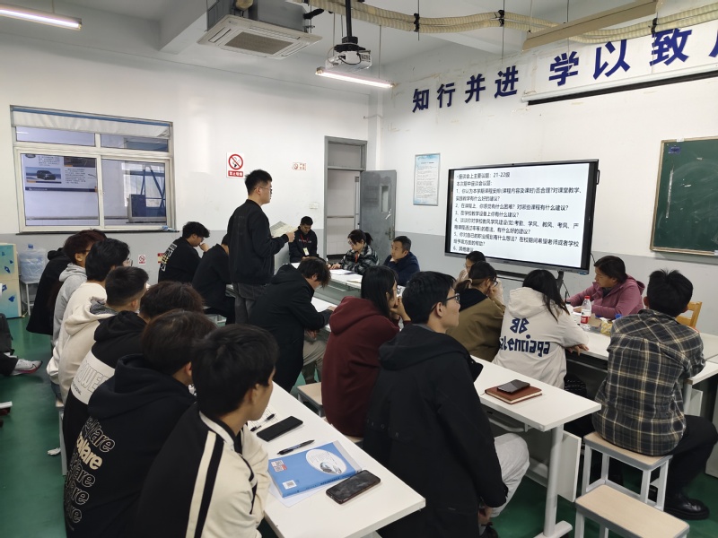座谈会上,宋敬滨阐明本次座谈会的目的,强调了学习委员的重要性,希望同学们踊跃发言,认真反馈班级学生对相关课程的学习感受和教师教学方面的意见和建议。各班学习委员逐一发言,纷纷表示老师们授课准备充分、饱含热情,充分利用现代化教学手段调动学生参与课程积极性;也有部分同学建议老师多提问、多举案例、多增加实践环节,丰富教学手段,活跃课堂气氛。