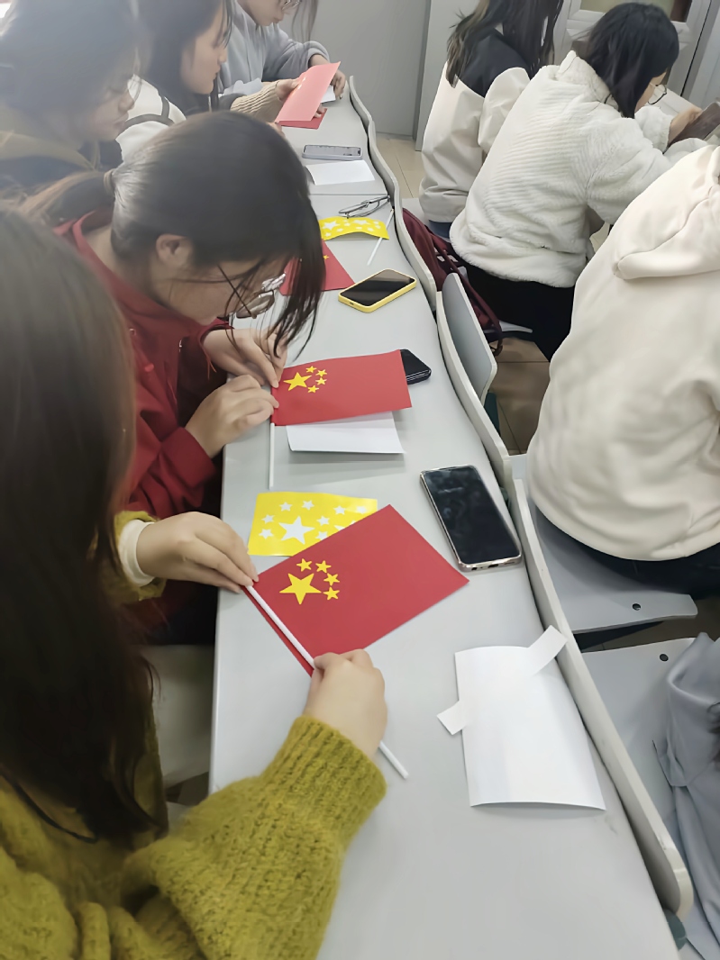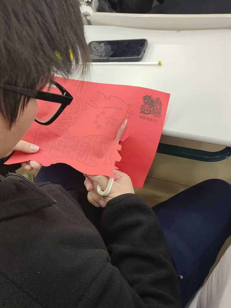 活动现场首先宣讲红色知识和历史,通过PPT、小演讲、图文展示等,让同学们了解革命先辈的英勇事迹,加深对红色记忆的理解。随后,邀请优秀学生分享了《红岩》《烈火中永生》等经典红色故事,展现了红色文化的伟大力量。播放了《建国大业》《建党伟业》等红色主题电影片段,激发同学们对红色文化的浓厚兴趣。最后,开展了小型国旗制作和红色革命圣地剪纸比赛,同学们积极参与其中,用自己的双手创作出了精美的红色作品。