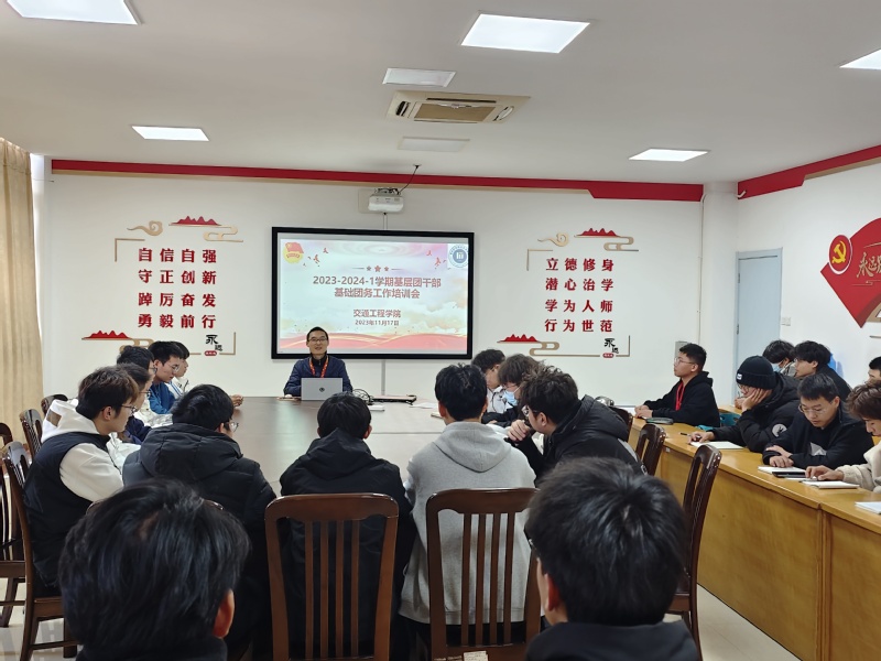 11月17日中午,交通工程学院团委在善为楼421会议室开展基层团干部基础团务培训会,团委书记陈云主持会议,2023级团支书和班长等近40人参加培训,培训内容为“团员发展”“推优入党”和“第二课堂”等基础团务项目。