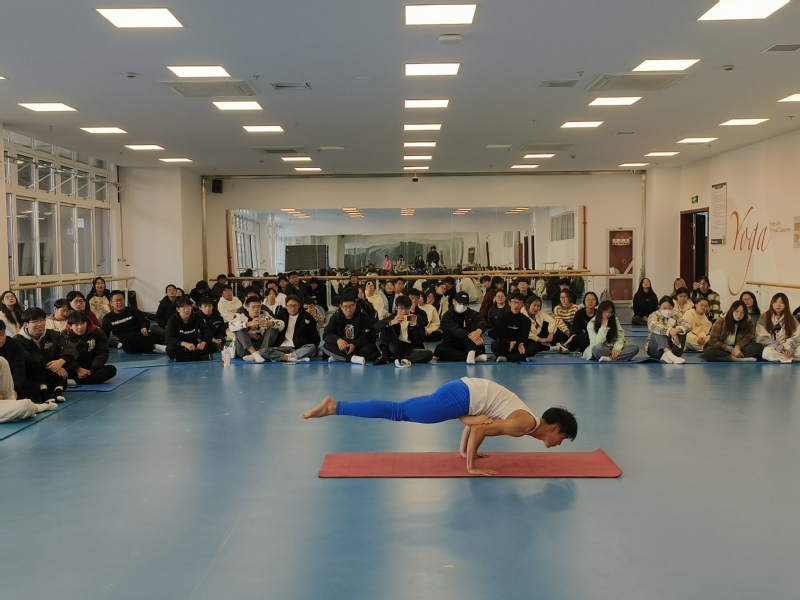 11月19日,为丰富我校学生的业余生活,促进瑜伽社团成员之间的交流与合作,为瑜伽爱好者展示瑜伽之美,展现我校学生的青春活力。艺韵瑜伽社在体育馆106举办了“我和瑜伽有个约会”为主题的快乐周末活动,包括选手和观众在内的120人参加了此次活动。