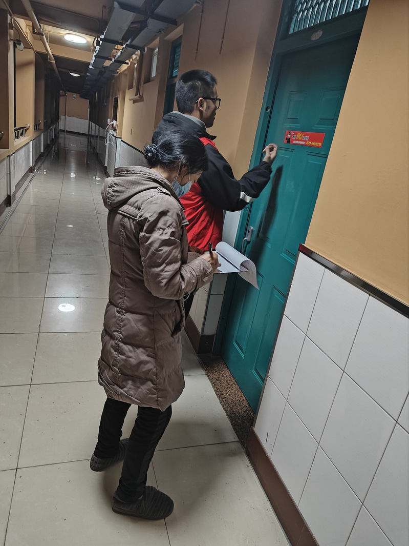 晚上,志愿者们帮助阿姨进行晚点名,查看每一位同学是否都在宿舍内,确保同学们的安全。