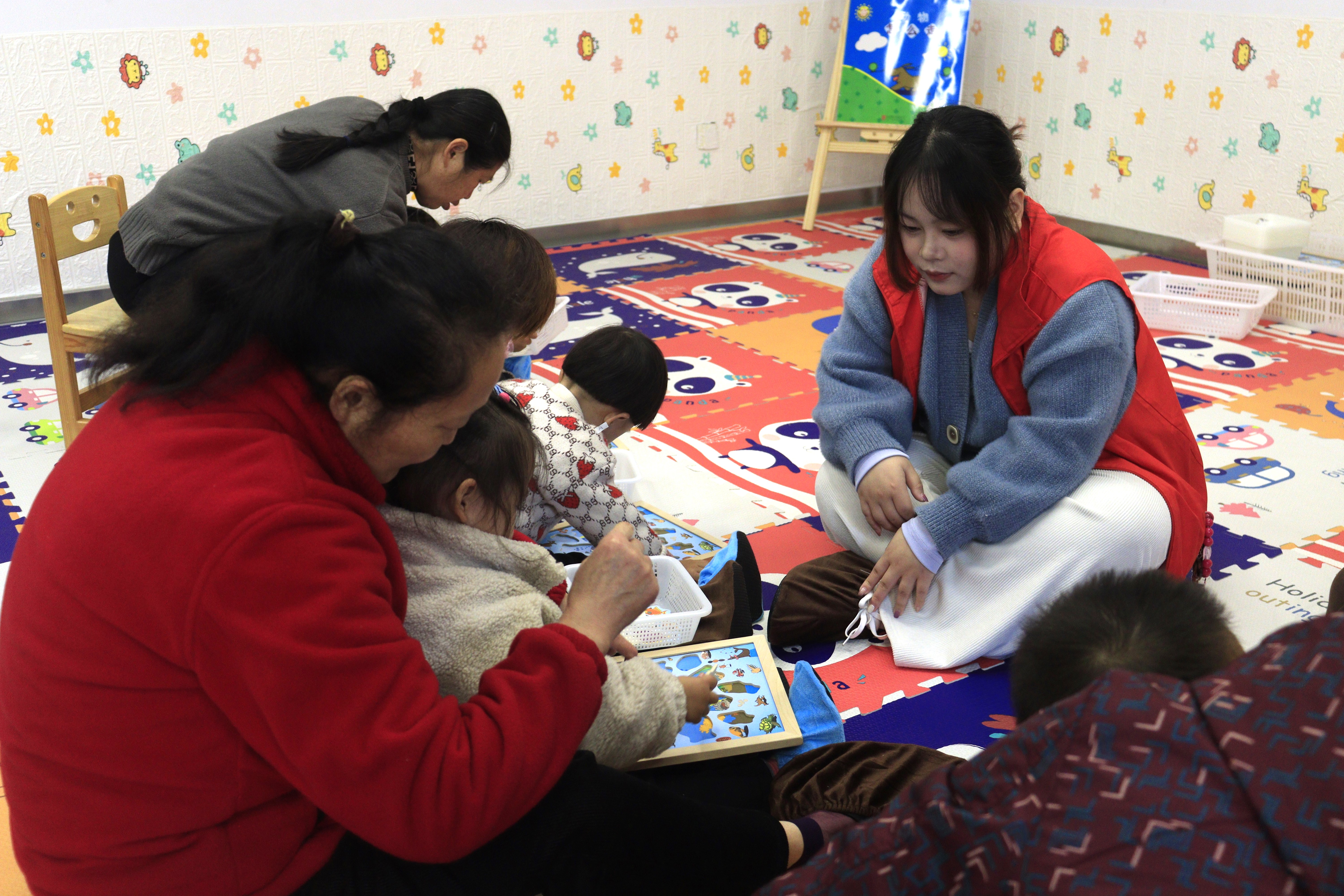 以“情”呵护孩童。作为大学生志愿团队的“高鹏青年”用自己的热情带给孩子们不一样的陪伴。他们和小朋友们一起做手操,带着小朋友们一起与幼教老师活动,让孩子们沉浸在“情”的呵护中。