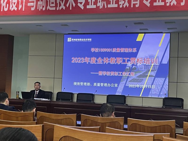 为提升全员质量管理意识,保障学校质量管理体系持续适宜、充分、有效运行,绩效管理部、质量管理办公室策划组织了2023年度全体教职工贯标培训工作。培训工作从10月中旬启动,持续到11月下旬,由绩效管理部教师白继恩主讲,以各党总支为单位有序开展,参训人员从校领导、中层干部、各部门内审员到普通教职工,真正实现了培训全员覆盖。