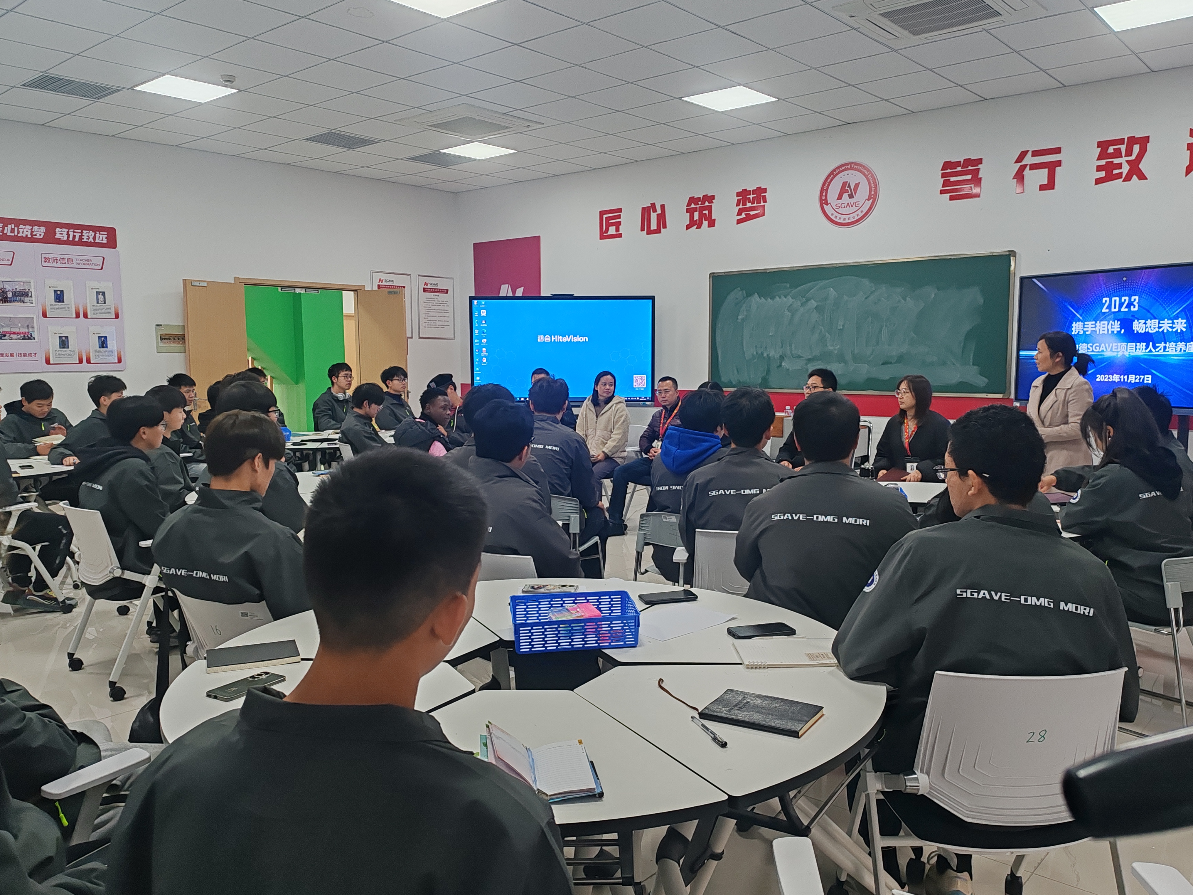 会上,蔡福海代表学校表达了对教改班全体学生的关心和期望,他希望同学们牢记技术报国的初心,牢记振兴制造的使命,成为阳光自信,技能过硬的机电人。王奇介绍了机械工程学院中德SGAVE教学改革项目实施情况,希望同学们珍惜学习机会,苦练技能本领,实现全面发展。赵千里、王自晔、王璀分别从专业学习、班团建设、思想引领等方面和与会学生进行交流。