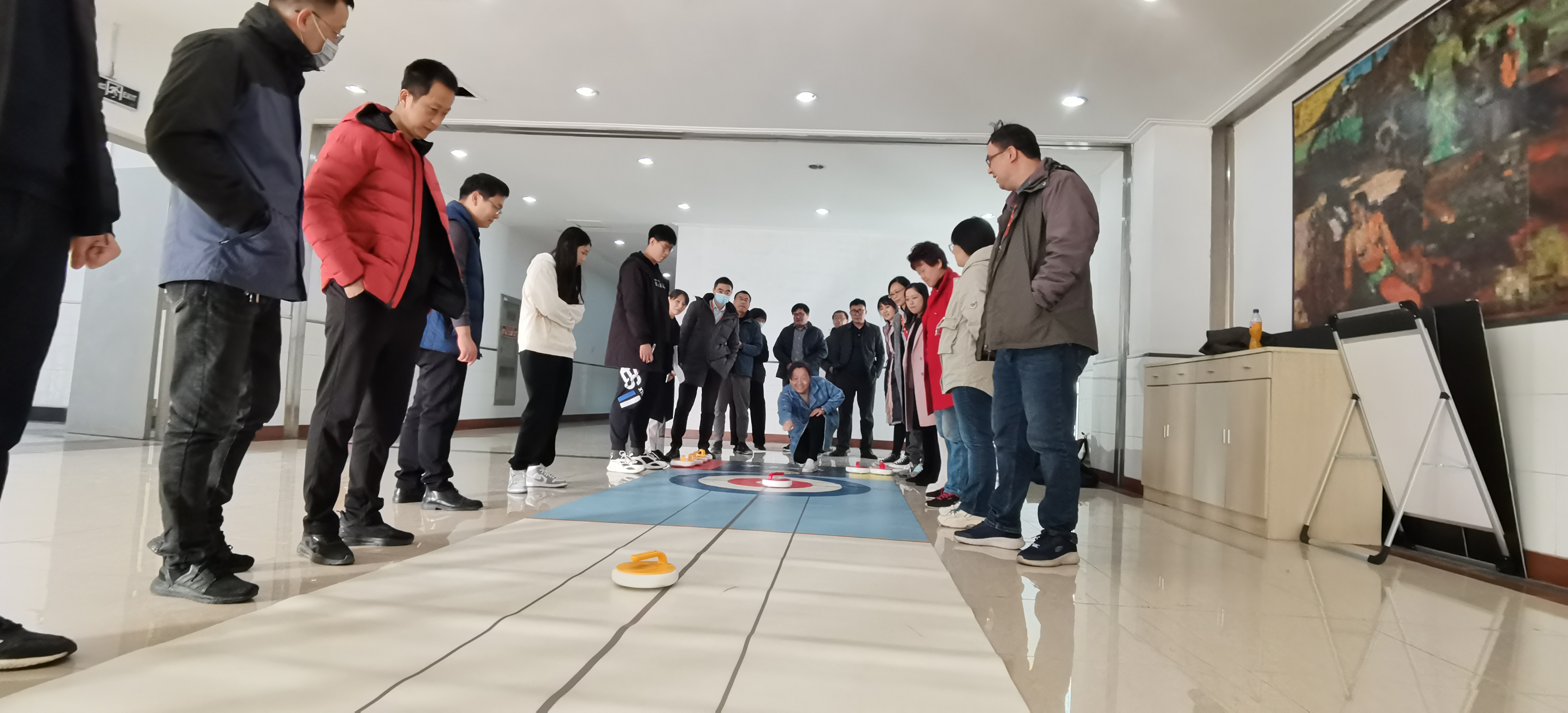 在比赛中,每当参赛队员掷出精彩的一镖或者投出精彩的一壶,现场就传来震耳的欢呼声,队员们迸发出的对飞镖和冰壶项目的参赛热情以及观众的欢呼声几乎燃爆现场。本次趣味运动不仅让参赛队员了解了飞镖和冰壶运动的比赛规则,同时也释放了工作与生活带来的压力,让老师们的身心得到了放松,并增强了团队的凝聚力,对提高团队的沟通协作能力以及工作效率具有重要的意义。