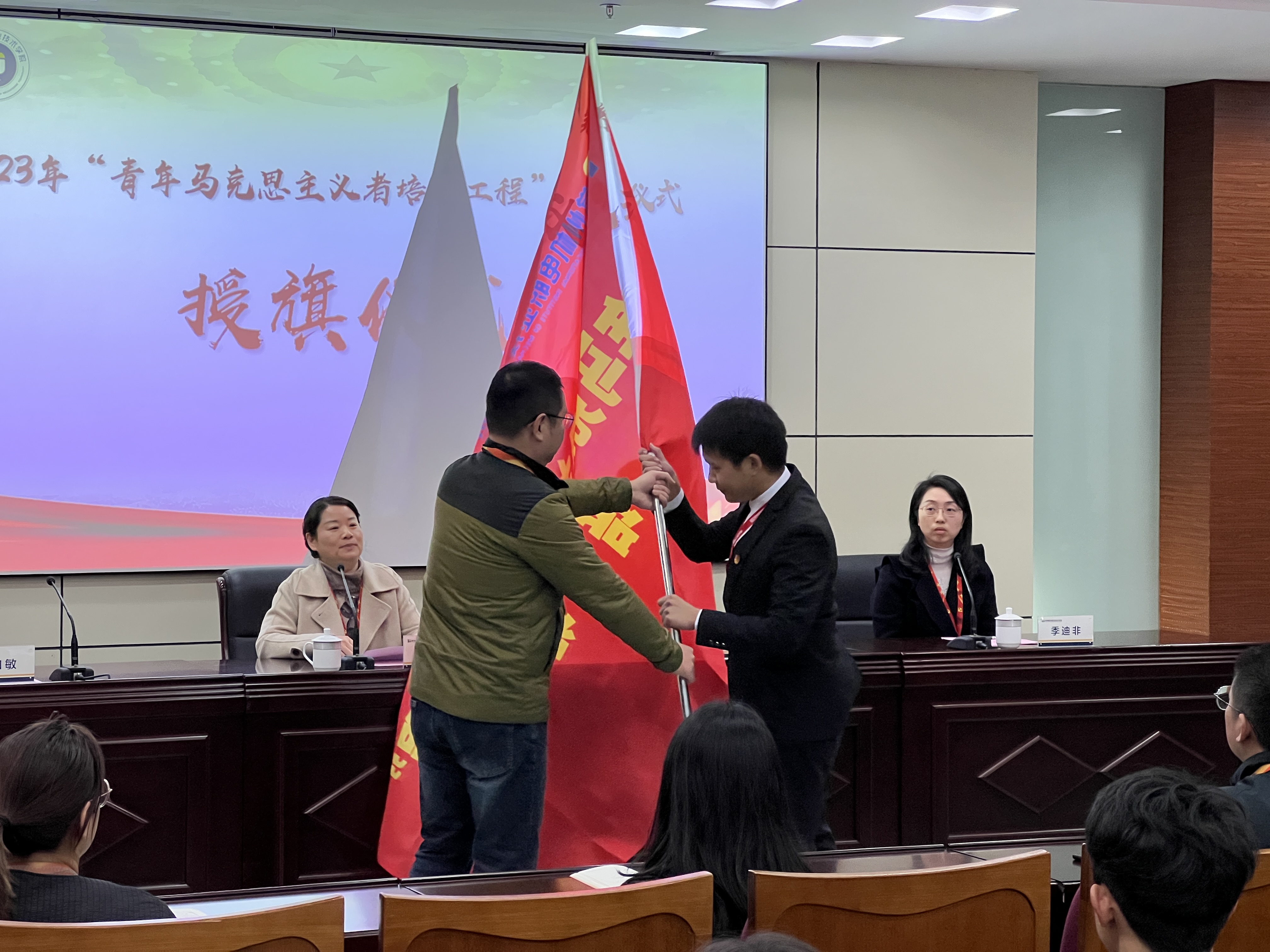 开班仪式在庄严的国歌声中拉开帷幕。季迪非在开班仪式上介绍了本期“青马工程”大学生骨干培训班的基本情况,并就培训班课程内容、纪律要求等作了详细说明。旗帜指明方向,旗帜凝聚力量,党委组织部、统战部副部长陈如敏为本期“青马工程”培训班授旗。机械工程学院学生会主席团成员王忠强作为学员代表发言,号召广大学员要立足本职、勇于创新、不断进取,进一步提高政治理论素养,做马克思主义坚定的信仰者,做青年学生成长成才的示范者,将学到的知识价值运用于今后的学习、工作中。
